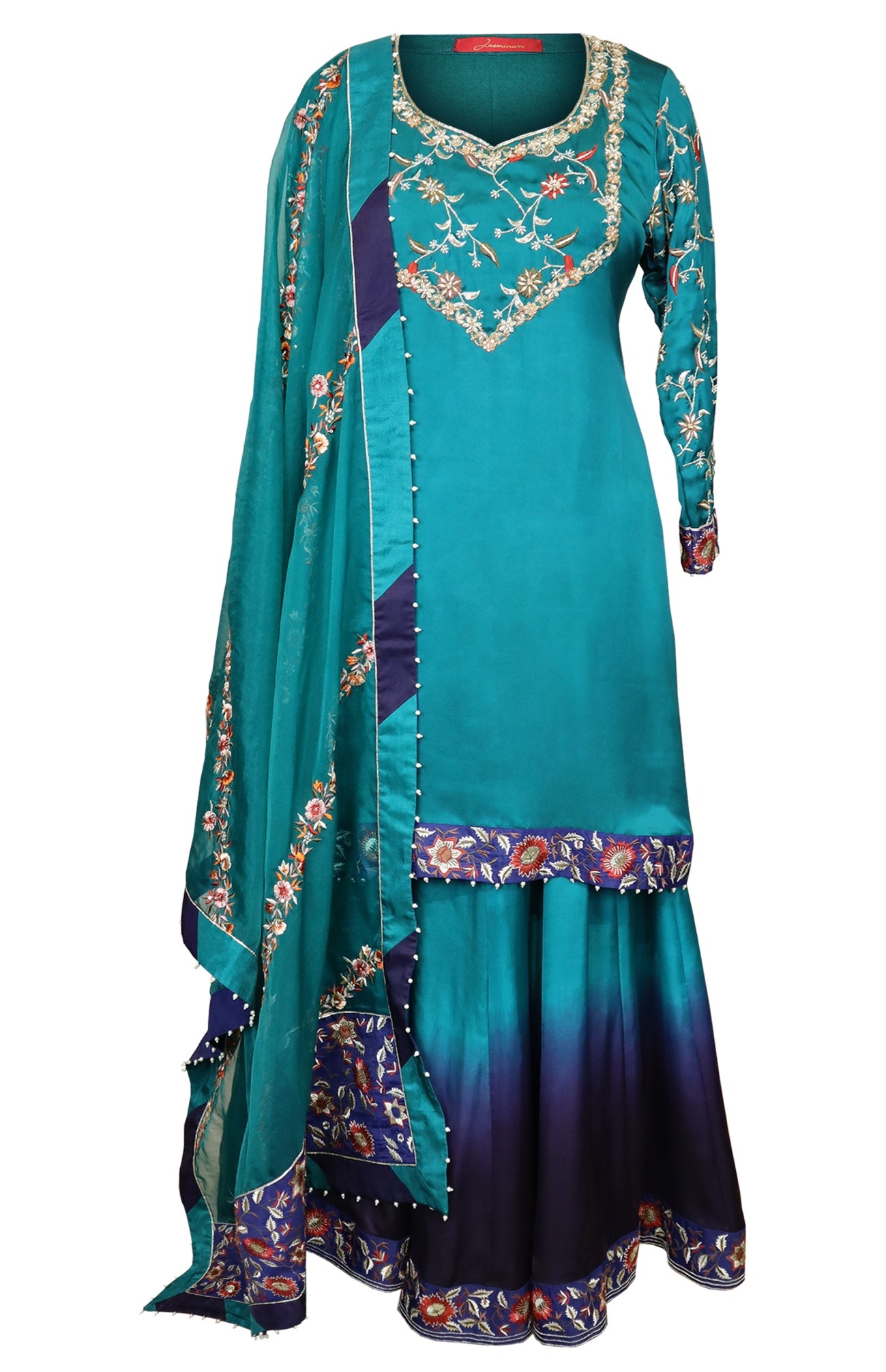 Fabric: Shirt & Sharara – Satin Silk | Dupatta – Flat Organza