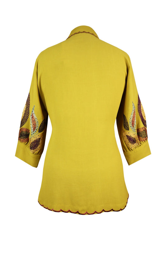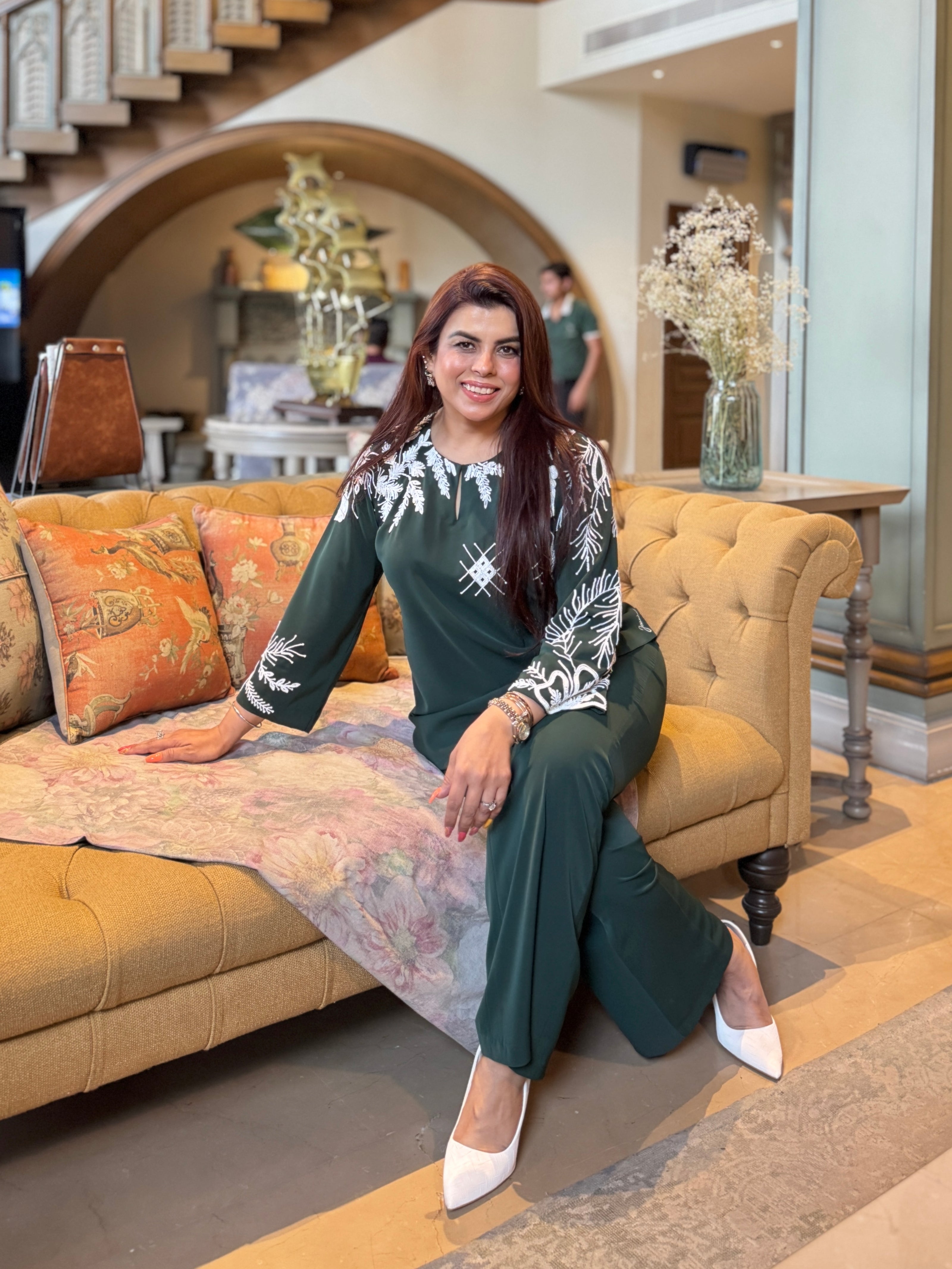 Ready To Ship3D Leaves Embroidery Co-ord Set - OLIVE