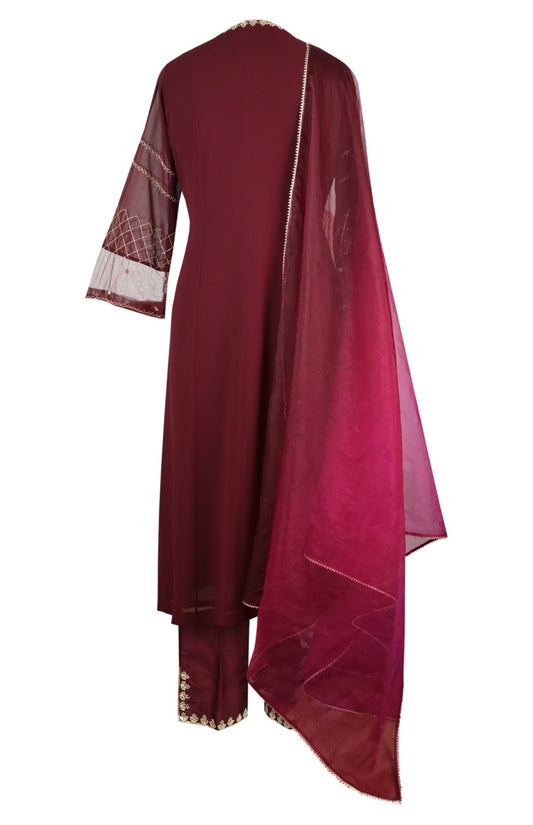 Ready To ShipGeorgette Suit With Tilla Embroidery - WINE