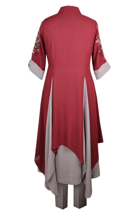 Ready To ShipsPalm Leaves A-Line Suit - MAROON