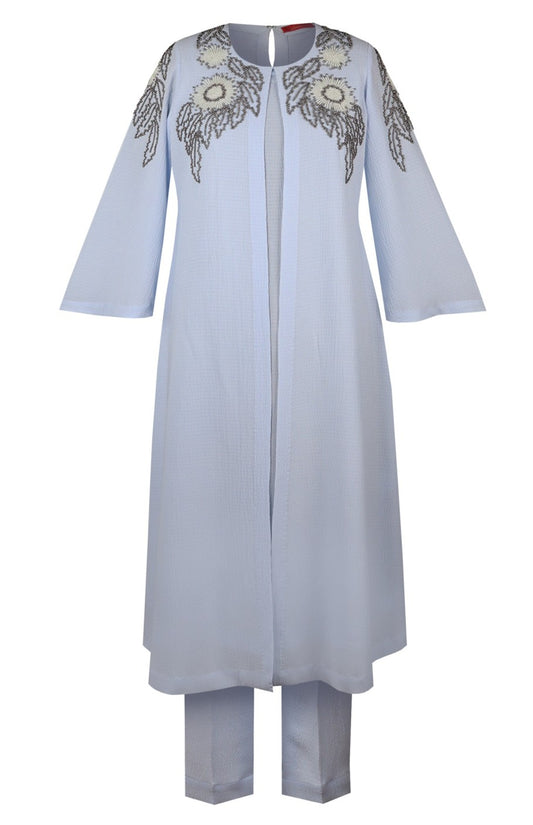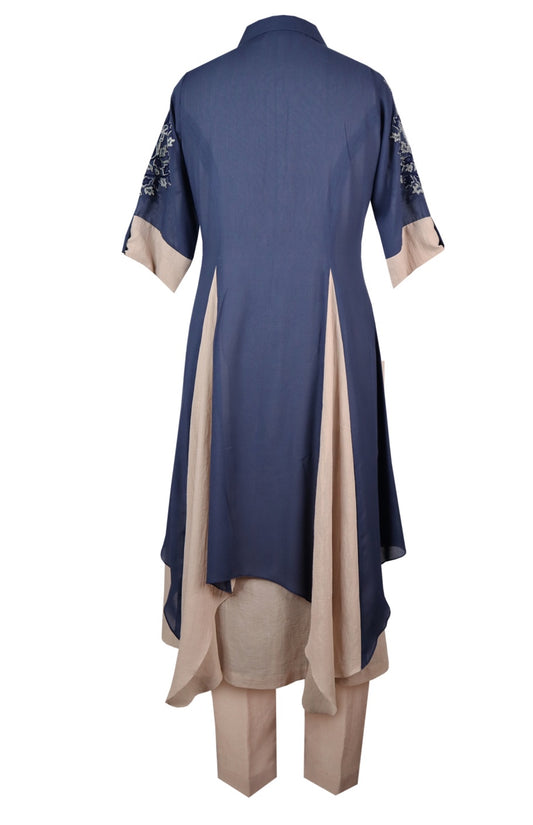 Ready To ShipsGlasswing Co-ord Set With Embroidered Pants - INDIGO