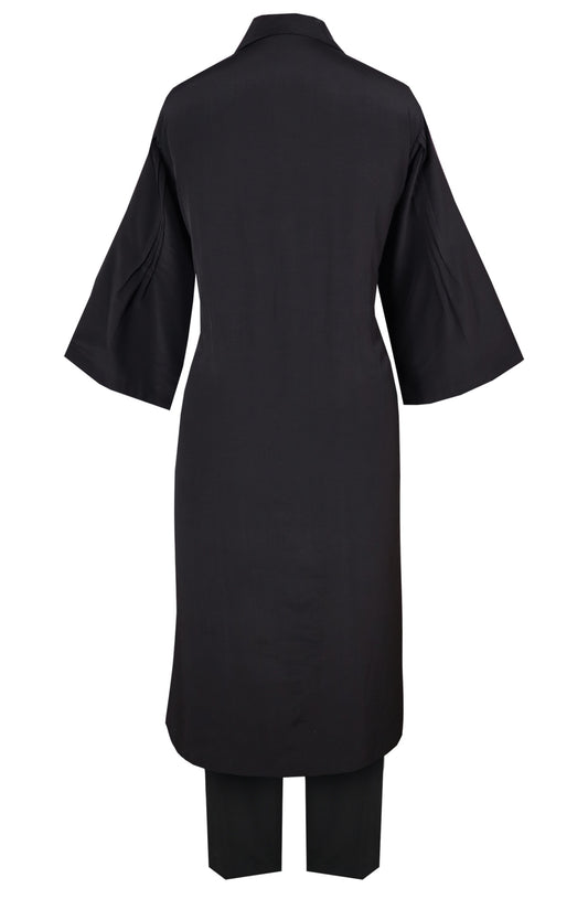 Ready To ShipsTurkish Motif Long Cape Kurta Set - NAVY
