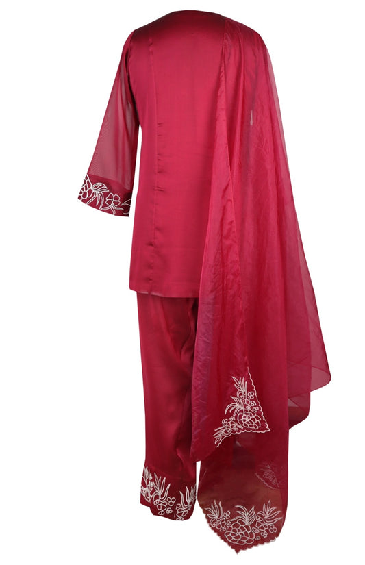 Ready To ShipsFarshi Suit With Floral Embroidery - RUBY